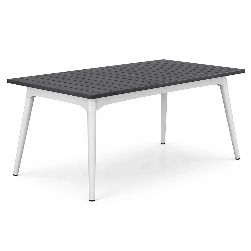 Table de jardin avec structure en aluminium et plateau en polywood.